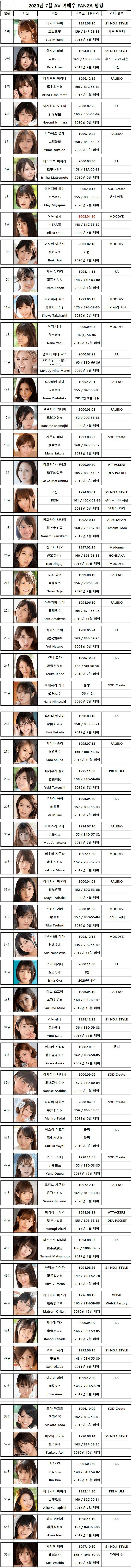 2020년 7월 AV 배우 랭킹
