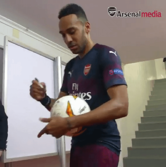 해트트릭 공에 에메리 싸인 받아가는 오바메양.gif