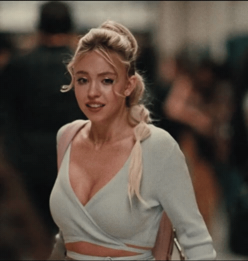 슬픔을 참으며 걸어오는 시드니 스위니
