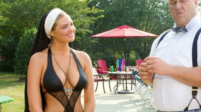 수영장에 온 수녀님