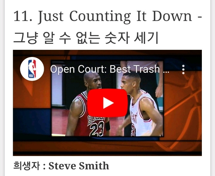 Steve Smith와 Michael Jordan은 서로에게 자극적인 말을 던지는데 서슴없었다. 하지만 어느 한날 Smith는 Jordan이 나즈막히 뭔가 세는 것을 들었단다.