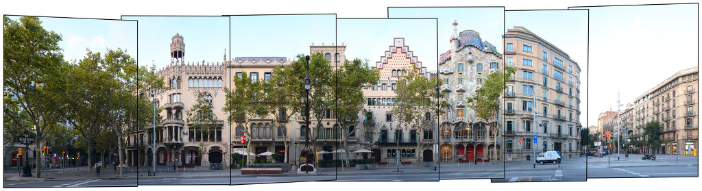 유네스코 세계 문화유산에 등재된 가우디의 작품인 카사 밀라, 카사 바트요도 그라시아 거리에 자리하고 있으며, 도메네크 이 몬타네르의 초기작으로 1층에 로에베가 입점되어 있는 카사 예오 모레라(Casa Lleó Morera)와 카사 바트요 옆에 자리하고 있는 카사 아마트 예르(Casa Amatller)도 모데르니스메 길의 대표적인 건축물이다.