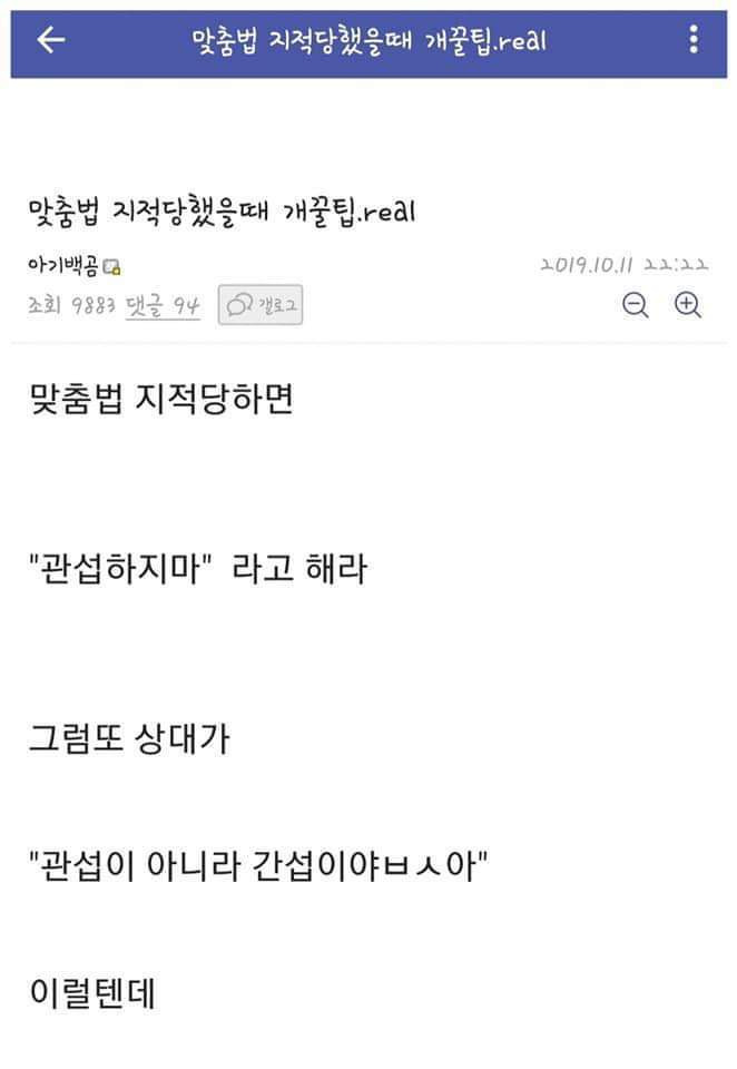 맞춤법 지적 당했을 때 꿀팁