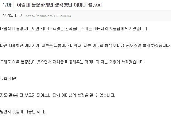어릴때 불쌍하게만 생각했던 어머니 썰
