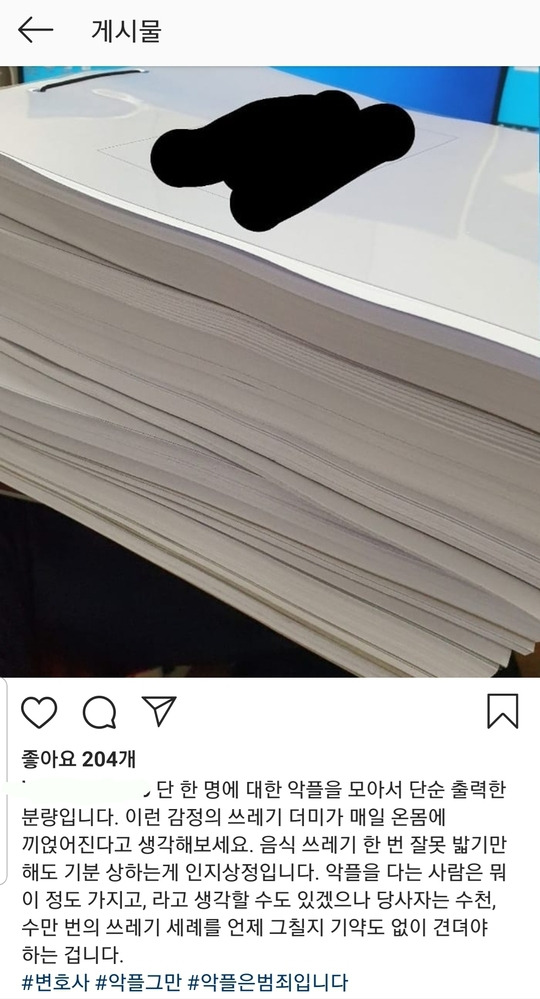 연예인 악플 담당 변호사가 올린 글