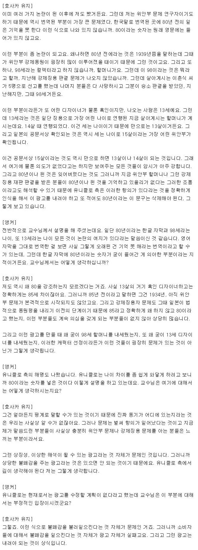 호사카 유지 교수의 유니클로 광고 분석