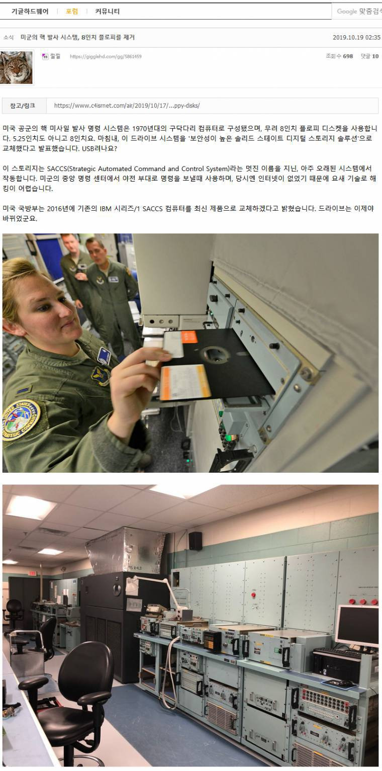 미 공군 핵미사일 발사 시스템:  플로피디스크 → SSD로 교체
