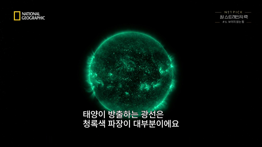 그런데 햇빛에서 가장 강한 빛은 청록색빛.