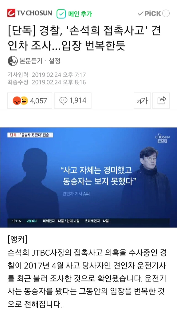 열람중 손석희 교통사고 견인기사 입장 번복 G 기분좋아 2019.02.25 1436 0