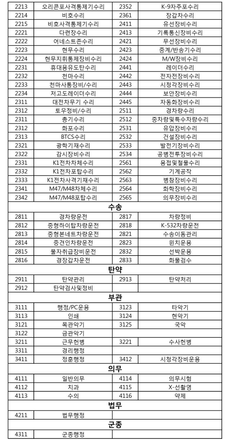 자신의 주특기 번호를 찾아보자