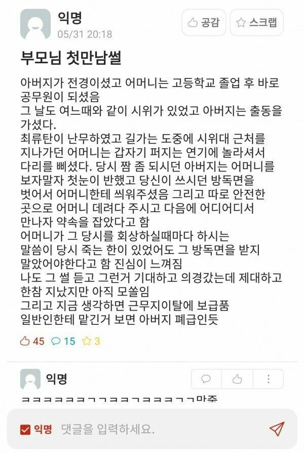 부모님 첫만남 썰