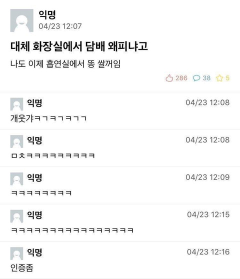 대체 화장실에서 담배 왜 피냐고