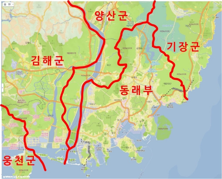 이미 동래면 지역까지 부산부에게 먹히고, 동래군은 조선시대 동래부와 이름만 같은 별개의 지역이 됨.