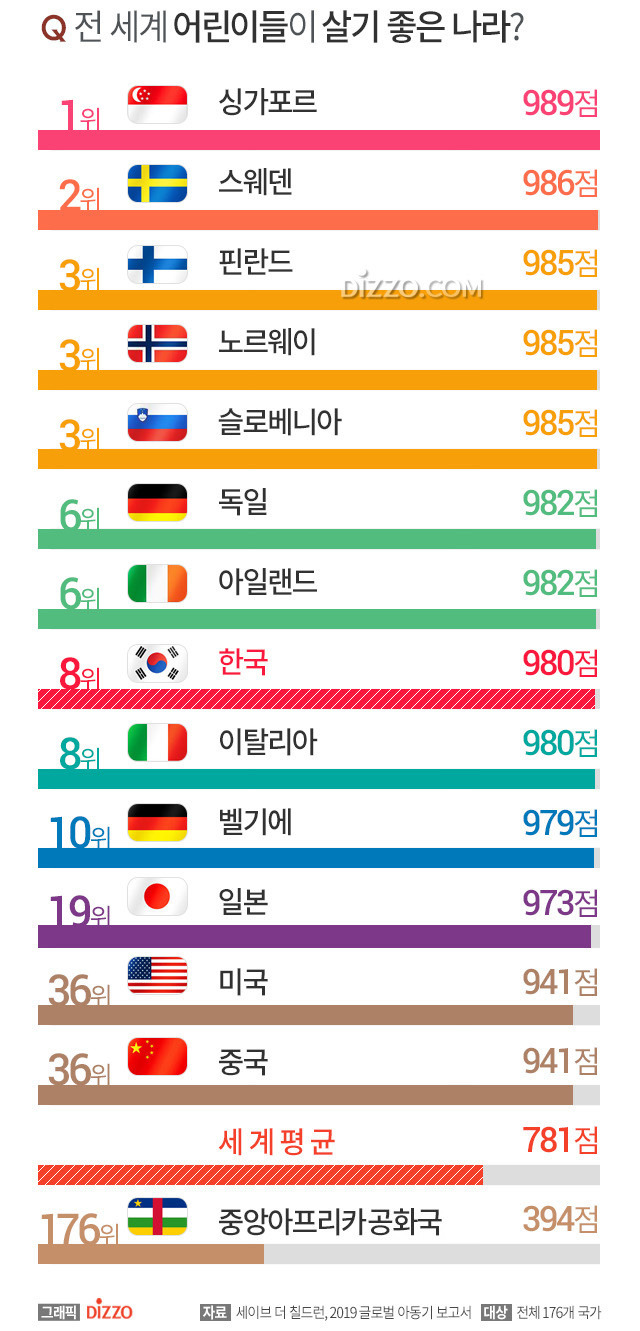 전 세계 어린이들이 살기 좋은 나라