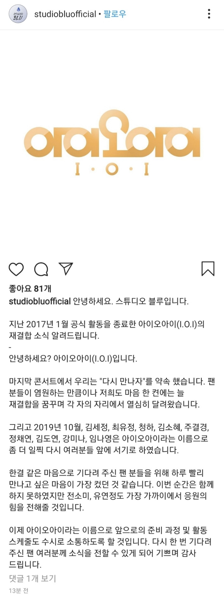 아이오아이(I.O.I) 10월 재결합 확정