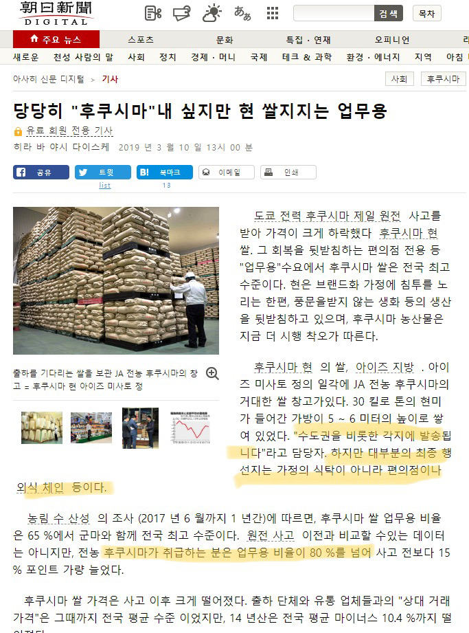 후쿠시마 쌀의 최종 행선지