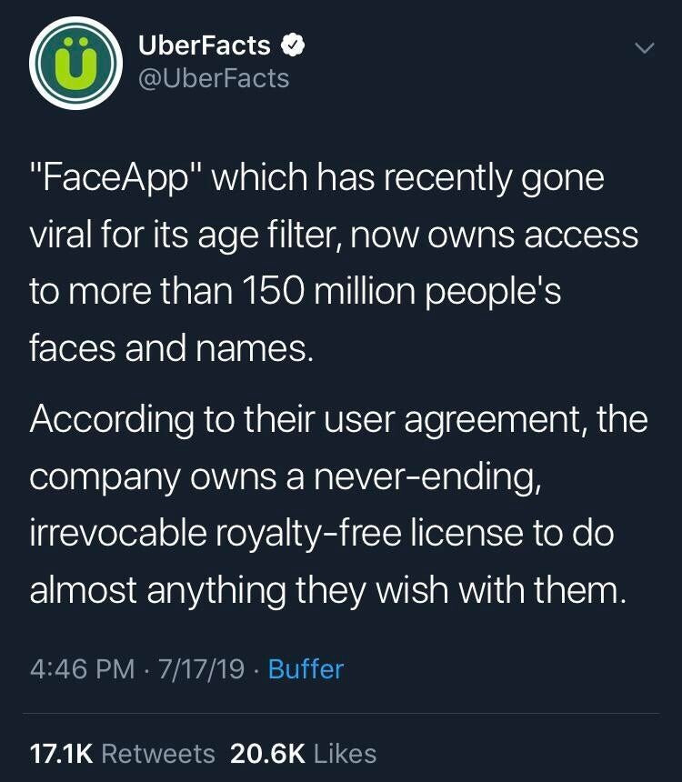 앱의 사용자 이용 동의서에 보면 FACE APP이 원한다면 사용자의 얼굴과 이름을 제한없이 마음것 사용이 가능함