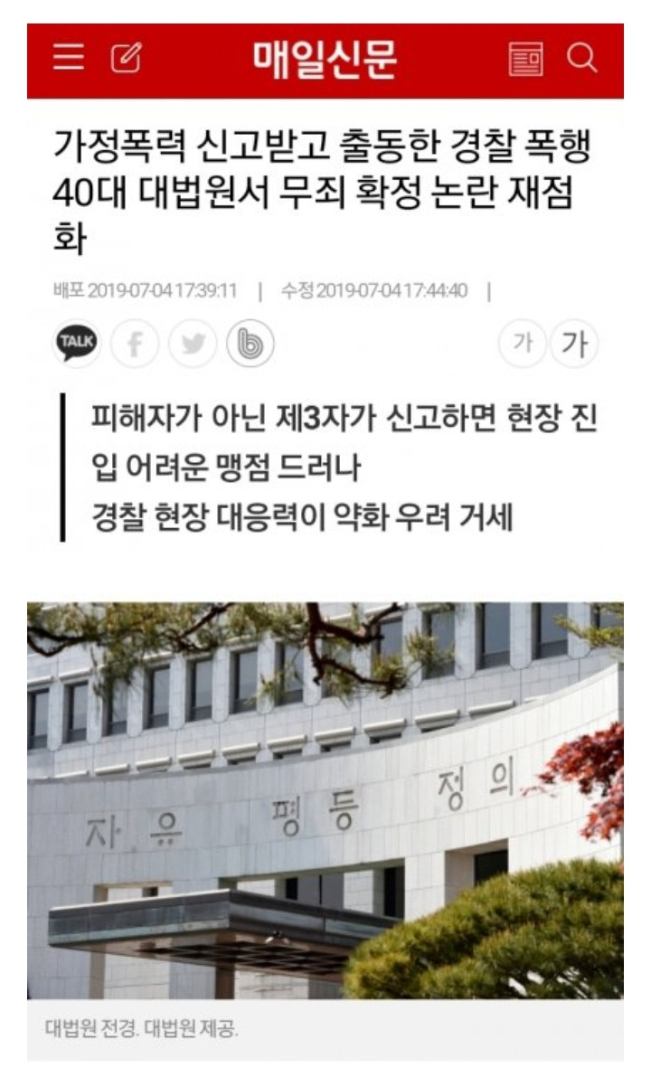 허락없이 들어온 경찰 폭행, 대법 무죄확정