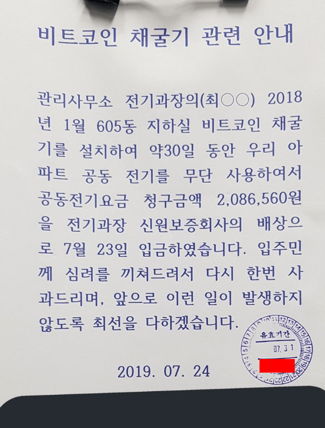 아파트 공동전기로 채굴