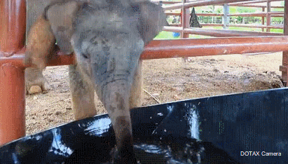 아직 물 마시는 법을 모르는 아기 코끼리
