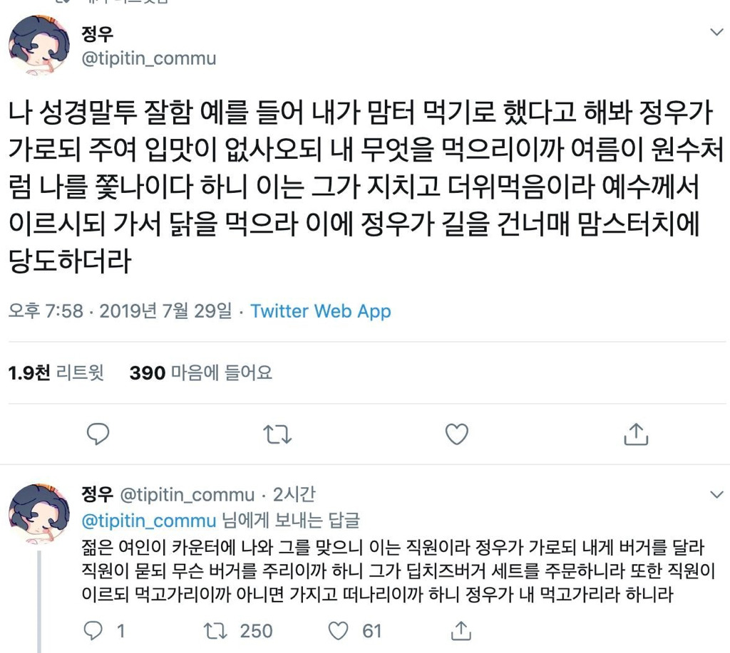열람중 나 성경 말투 잘함 G 썸씽녀 2019.07.31 851 0