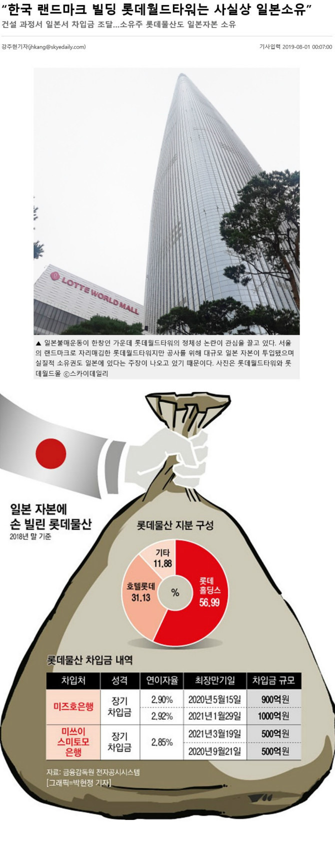 롯데월드 타워는 사실상 일본 소유