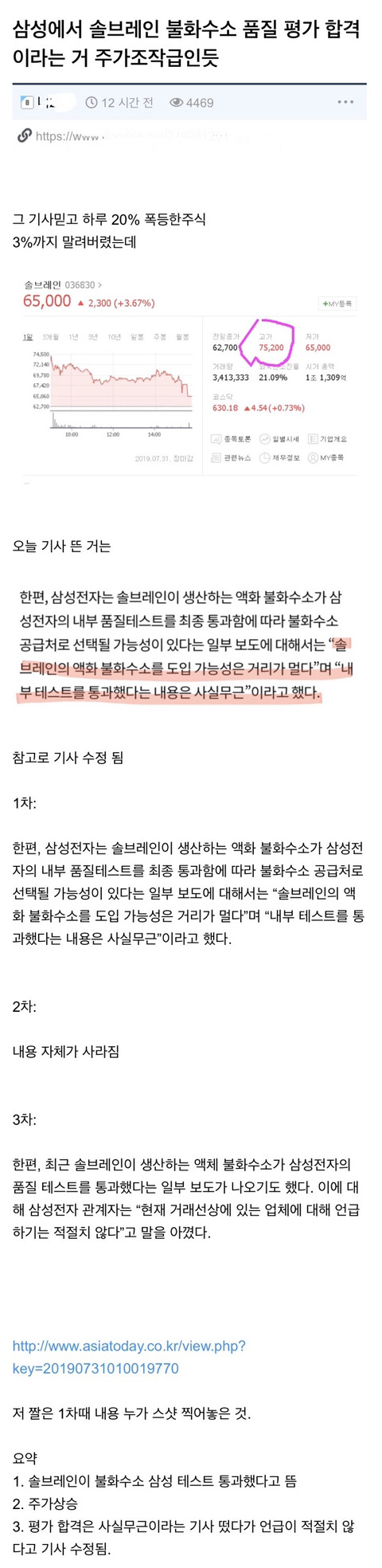 주가조작급 삼성-솔브레인 기사