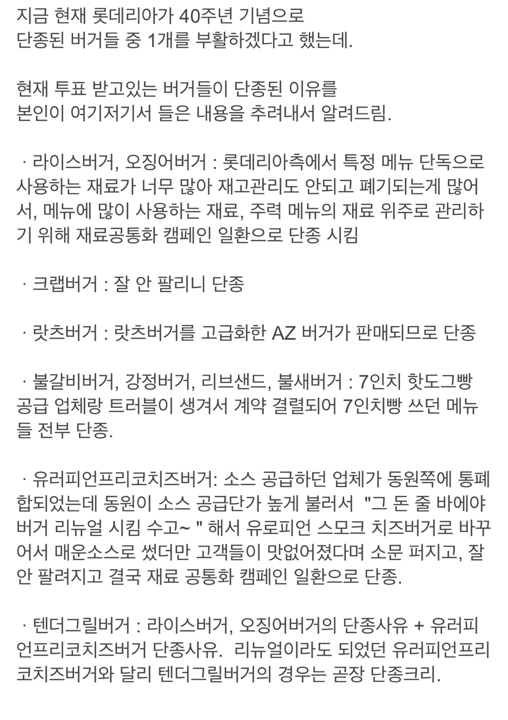 롯데리아 레전드 버거들 단종된 이유.ssul