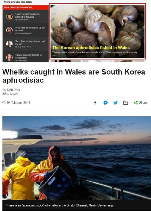 BBC는 “아시아인들은 골뱅이를 최음제로 여긴다”며 “한국 남성들은 웨일스산 골뱅이가 없으면 여성과 데이트를 할 수 없다”고 분석했다.