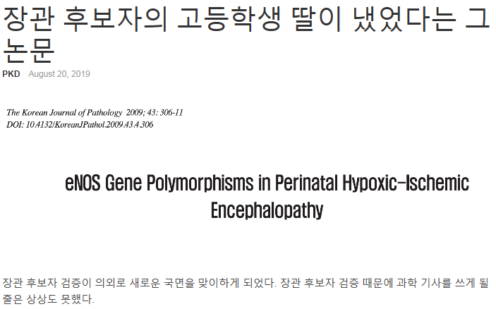 과학 커뮤니티에 올라온 조국 딸 논문 평가