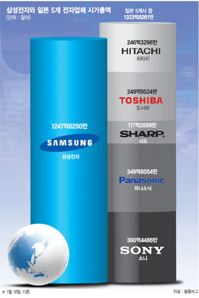 삼성전자와 일본 전자업체 시가총액 비교