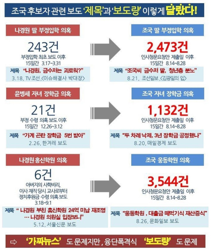 조국 관련 보도 '제목'과 '보도량'