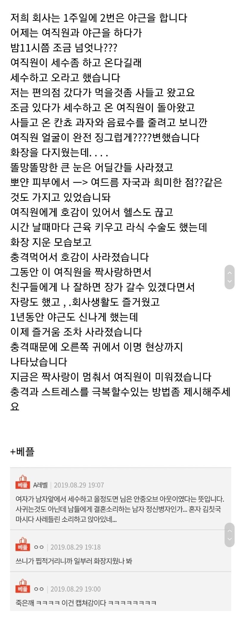 여직원과 야근하다 충격받은 남자
