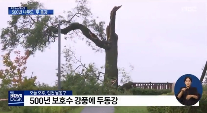 태풍 링링의 강풍에 부러진 인천의 500년된 보호수