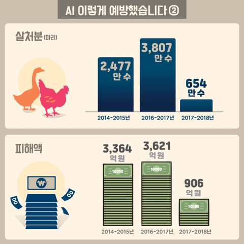 구제역 차단에 147일이 걸린 2015년, 383건의 AI가 발생했던 2016~2017년 겨울과 비교해 보면 우리 축산농가의 겨울나기가 한층 더 수월해졌습니다.