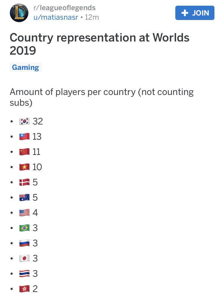 2019 롤드컵 출전 선수들 국적