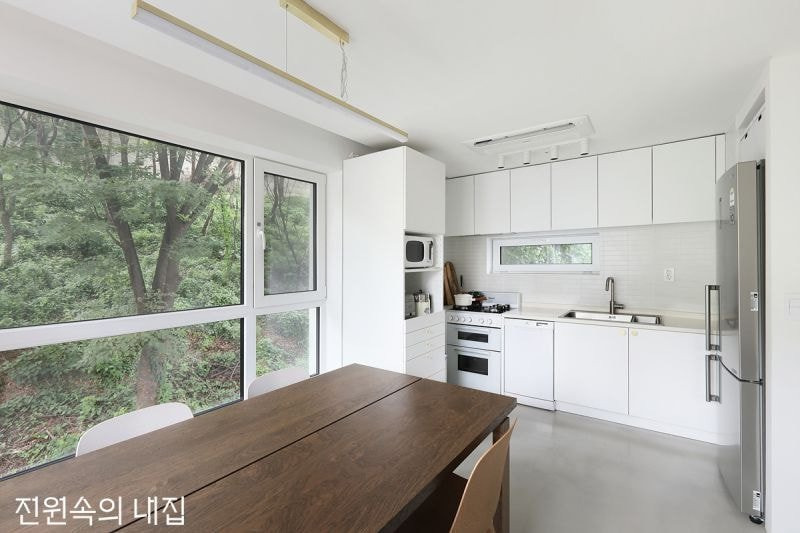 산 쪽으로 크게 창문내서 좁은 집의 개방감을 살림