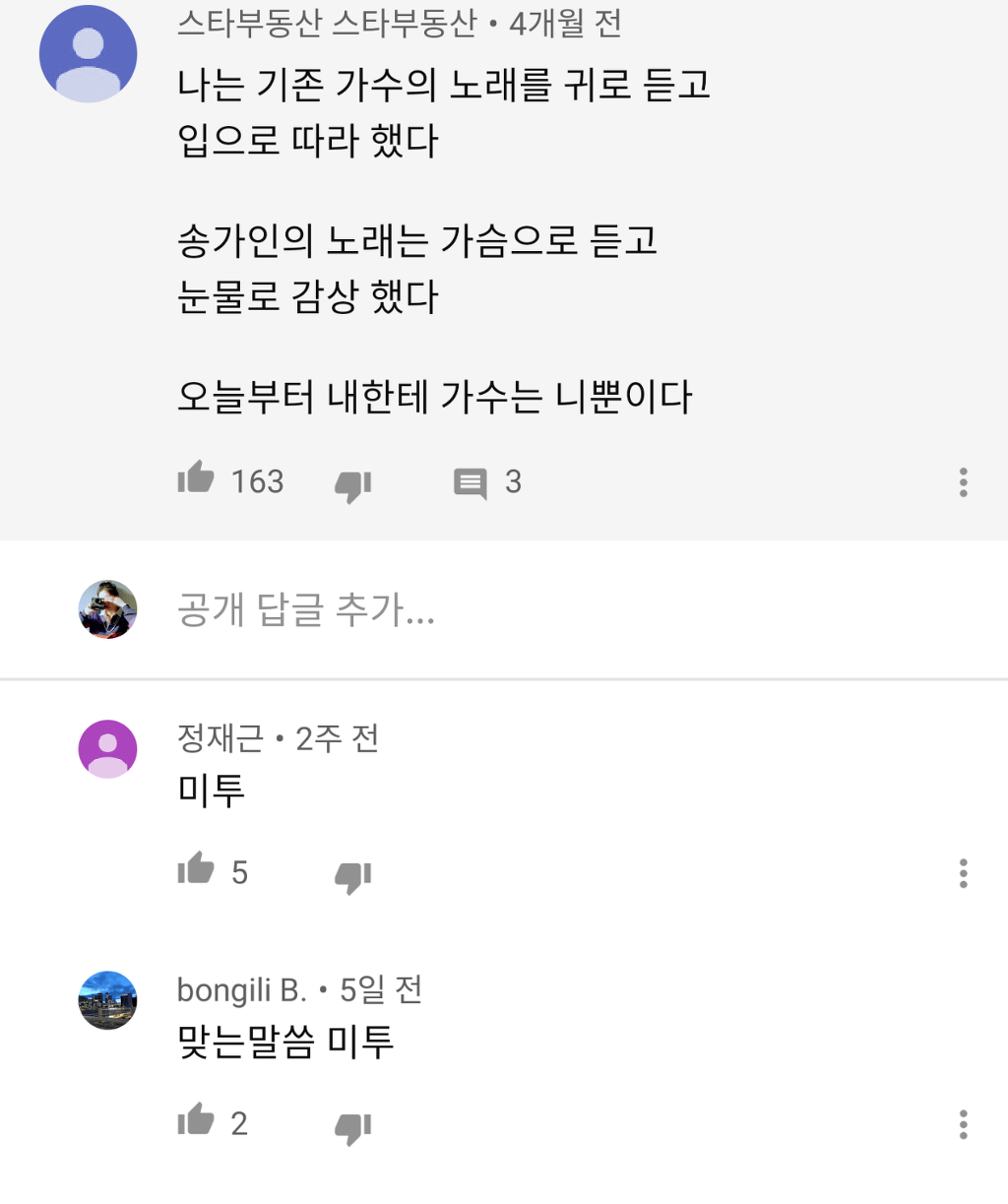 송가인과 도티 유튜브 댓글 온도차