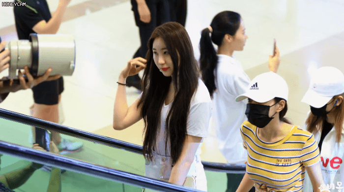 아이즈원> 에스컬레이터 타는 강혜원 ㄷㄷ . GIF