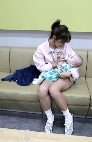 아기 우유 먹이는 세정 . GIF