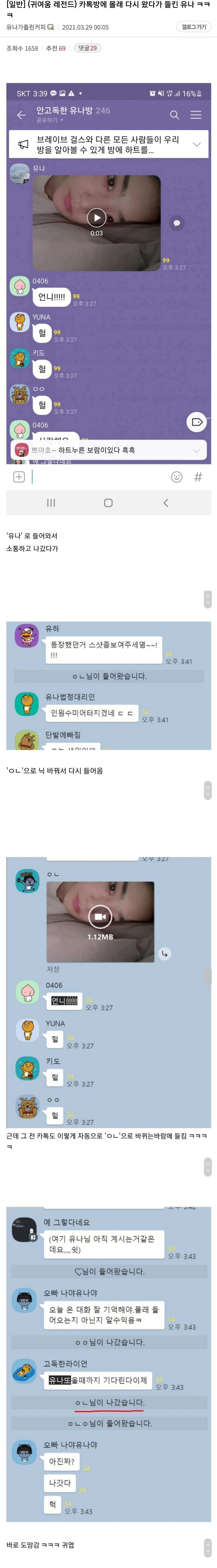 카톡방 몰래 다시 왔다가 들킨 쁘걸 유나