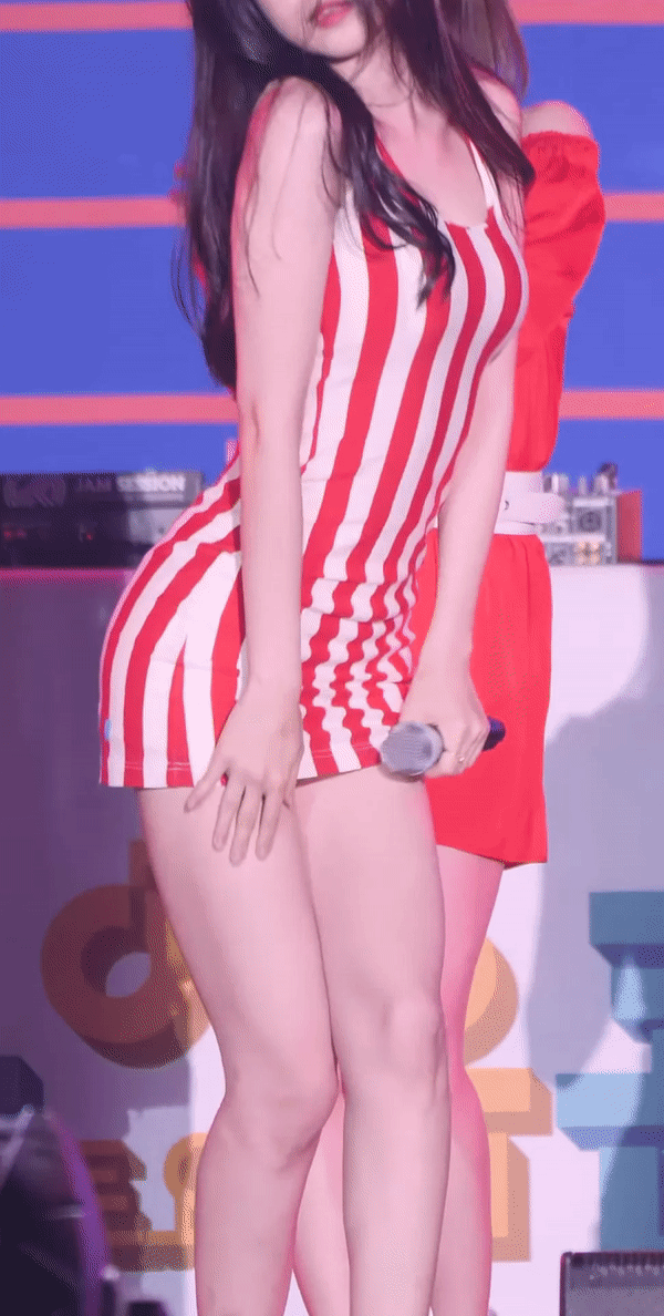 빨간 세로 스트라이프 원피스 손나은 몸매라인