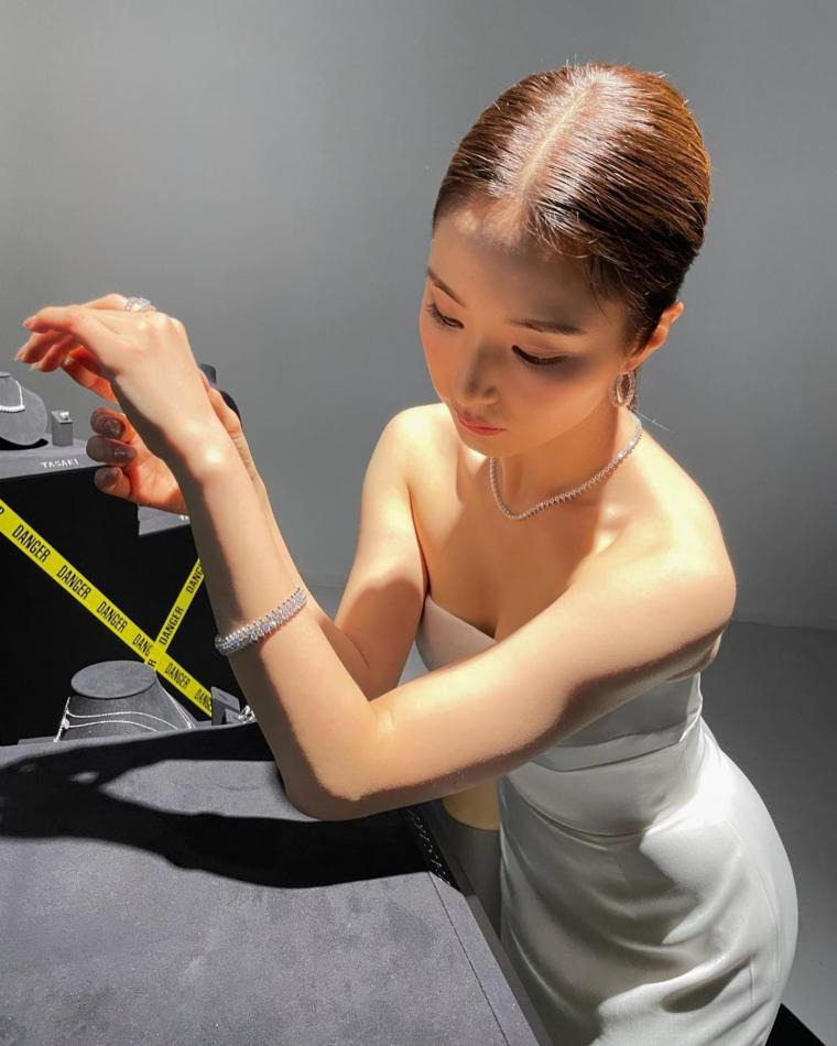 튜브탑 드레스 은근한 가슴골 신세경 - 바자xTASAKI 화보