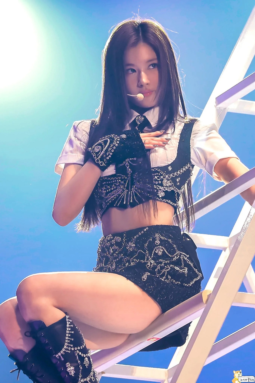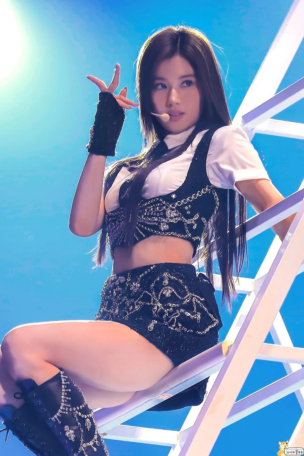 밑에서 보는 눌린 허벅지 트와이스 사나