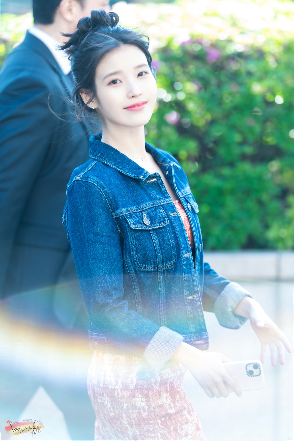 똥머리 청자켓 아이유