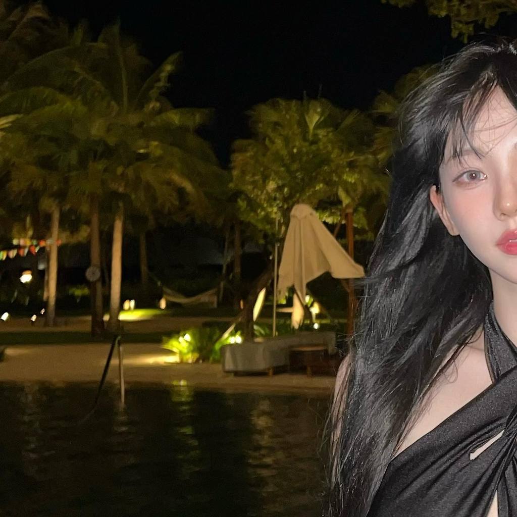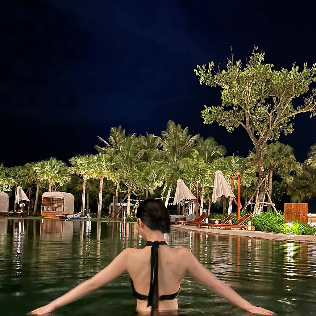 수영장에서 수영하는 에스파 카리나
