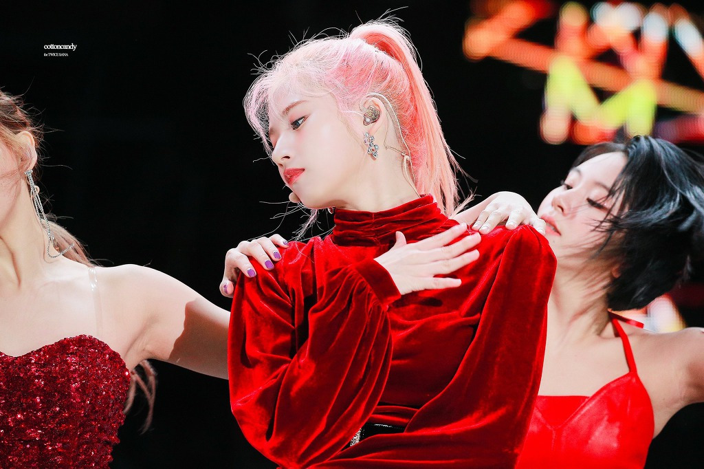 레드 벨벳 입은 트와이스 사나